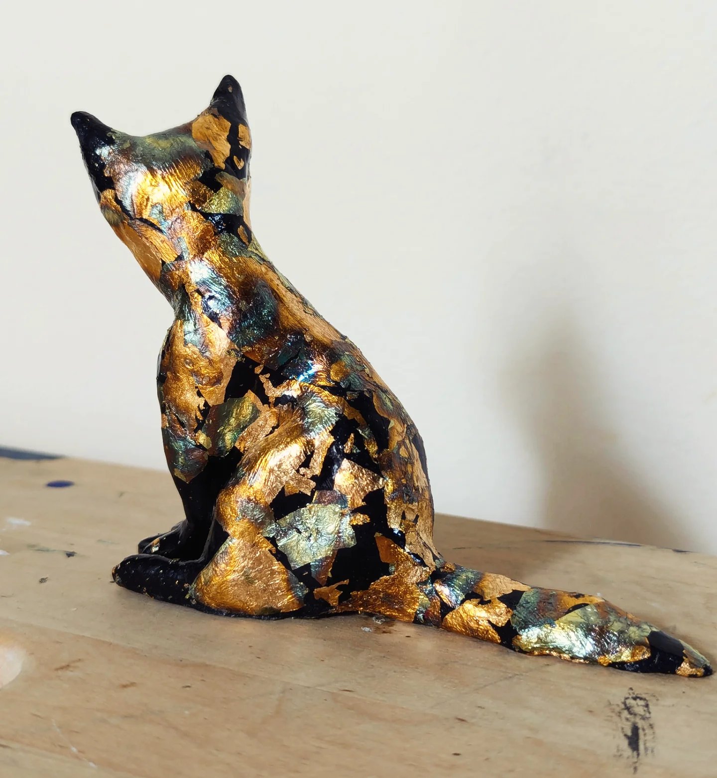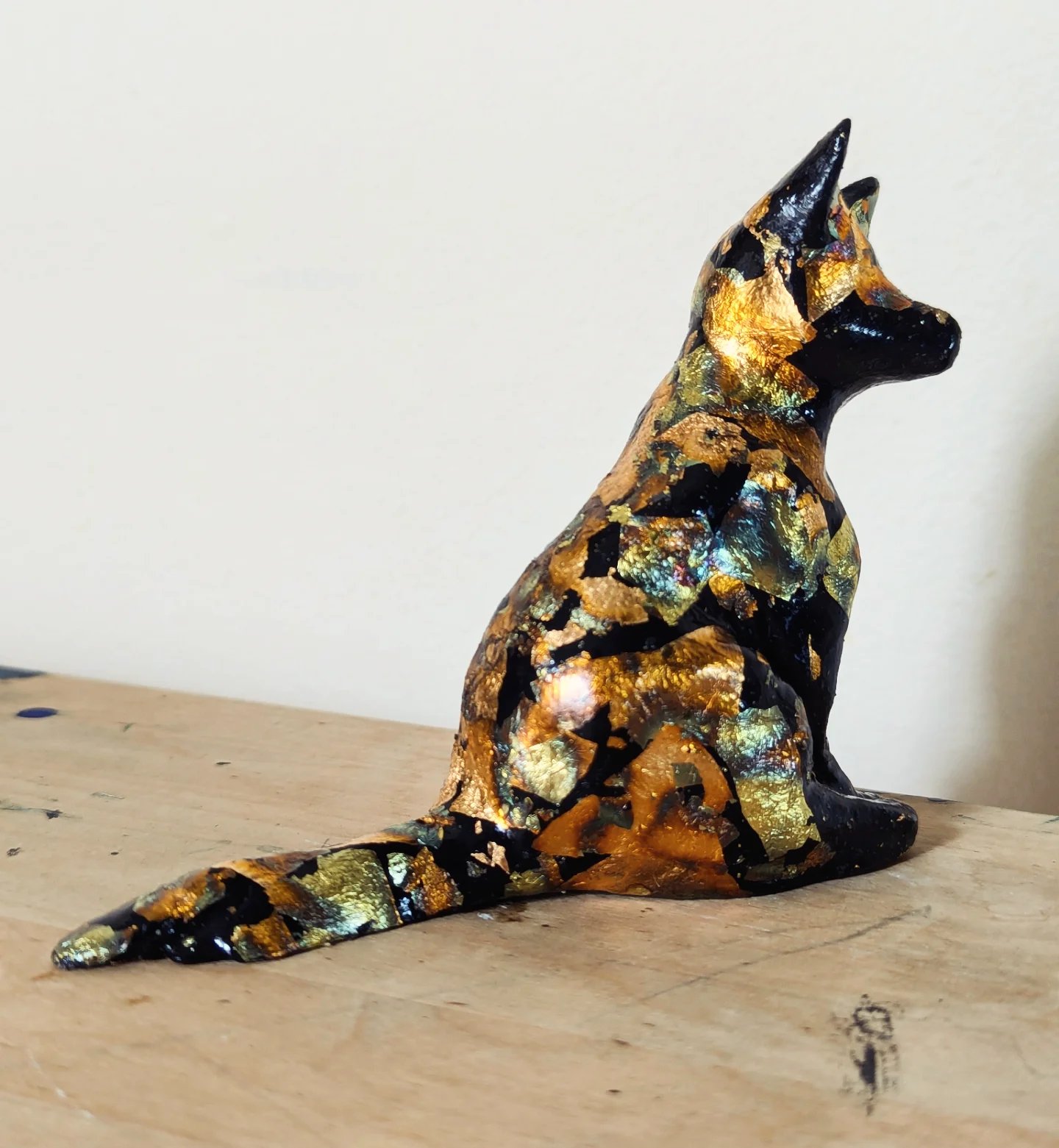 Metal leaf on paper clay, 3.5" x 4" x 1.5"